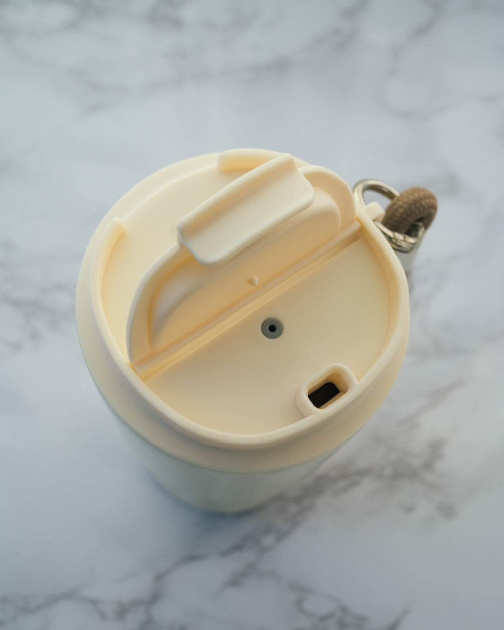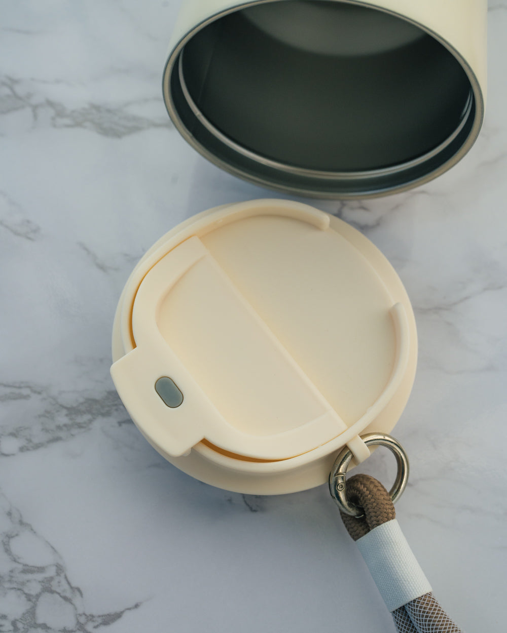 This Travel Stainless Steel Insulated Coffee Mug Tumbler features a detachable nylon lanyard for easy carrying and an anti-slip base.