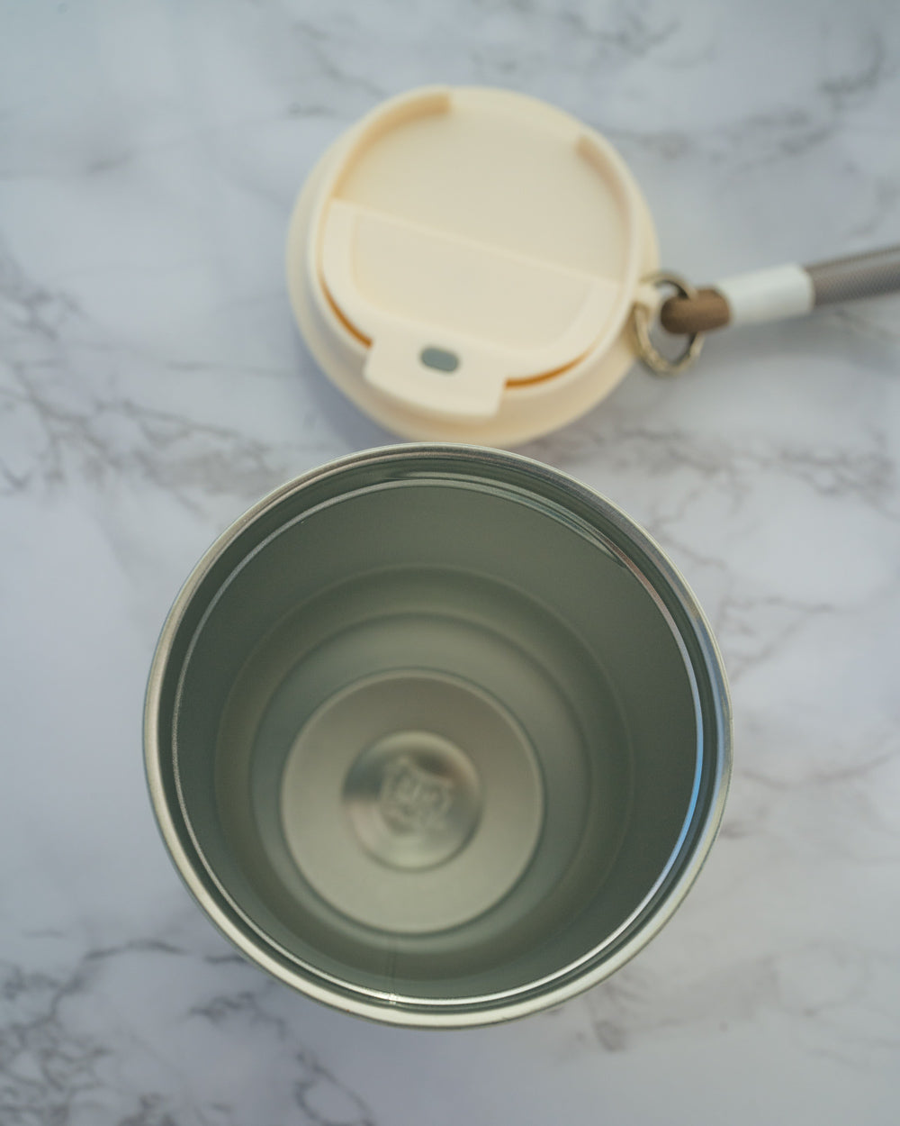 The spill-proof lid is leak proof and the double walled stainless-steel insulation keeps drinks hot or cold for hours and is perfect for all beverages including coffee, tea or ice water.