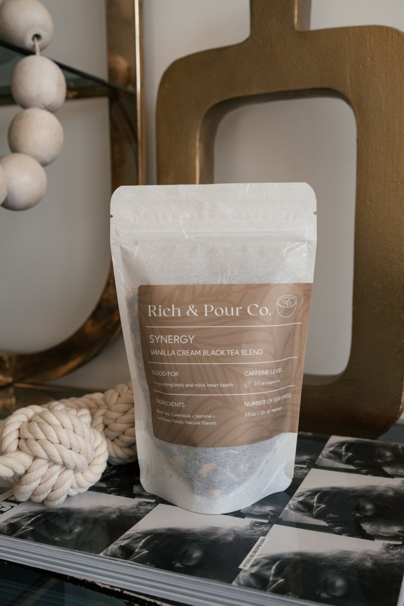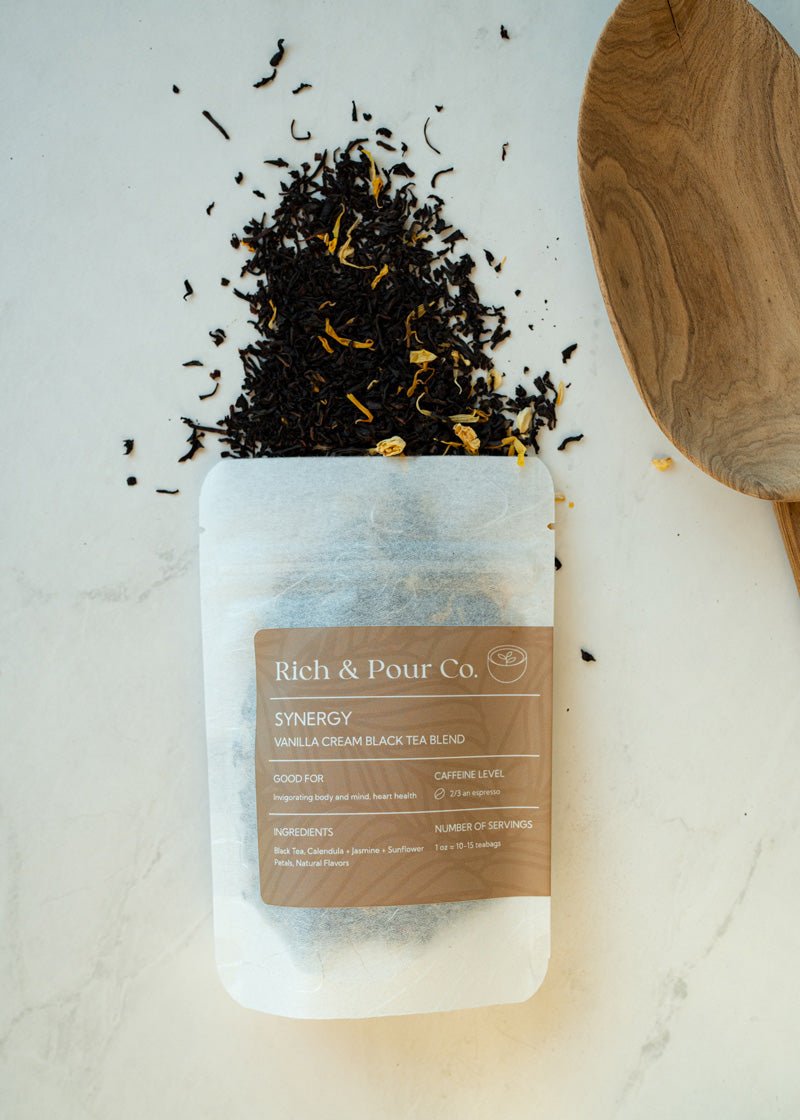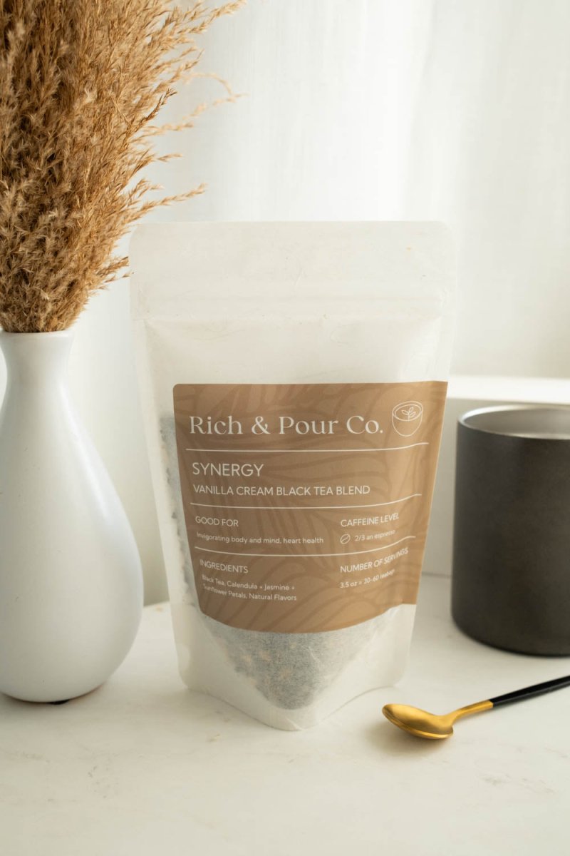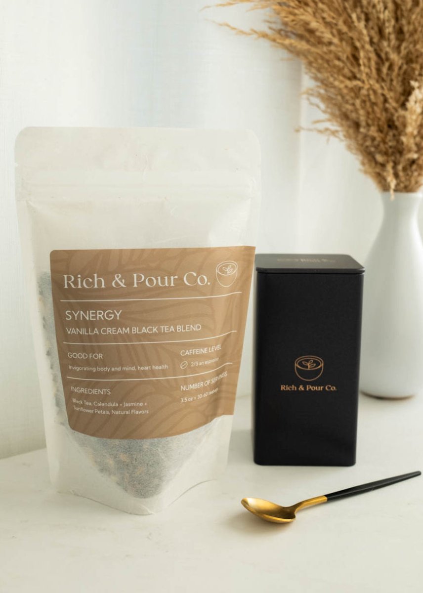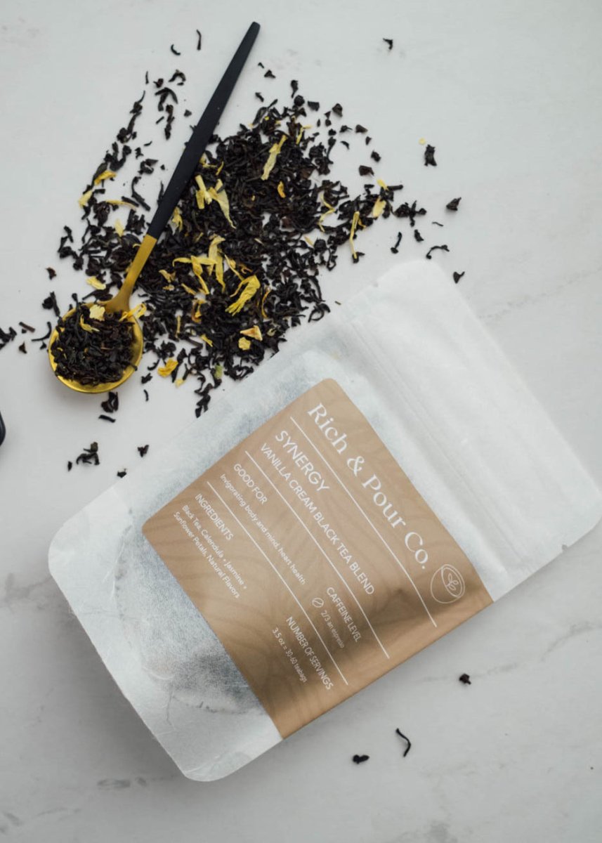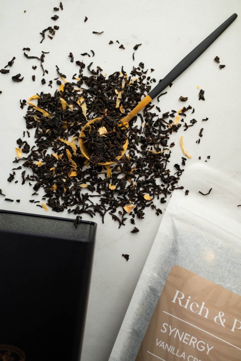 The vanilla compliments the black tea very well, I like to drink this tea when I need a pick up during the day or even night when I have social gatherings, it gives me just enough pep to stay awake and social! I am excited to see what the new blends rich and pour will come out with!